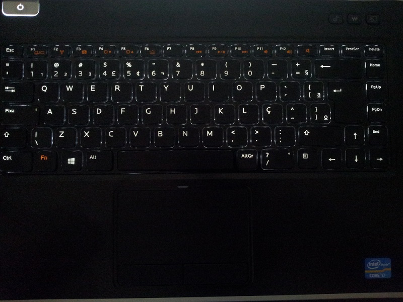 O teclado é algo muito importante para um blogueiro, pois passamos horas digitando. No Inspiron temos o padrão brasileiro, com teclas para a acentuação sem truques e Ç. Tem um toque muito leve e não fazem barulho, o que é ótimo quando preciso trabalhar à noite e minha esposa quer dormir em silêncio. Todas as teclas têm um espaço satisfatório que evita apertarmos algo por acidente e os caracteres são grandes e legíveis.